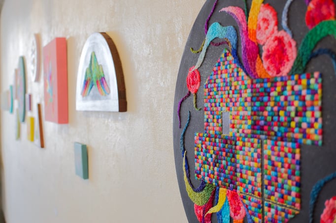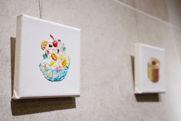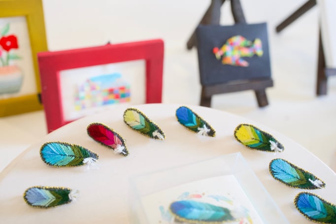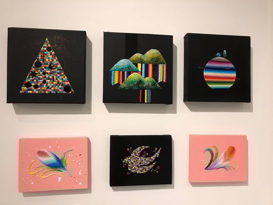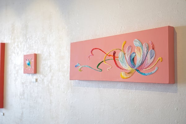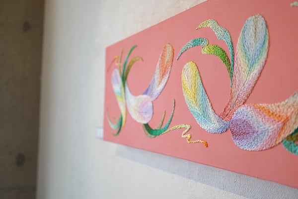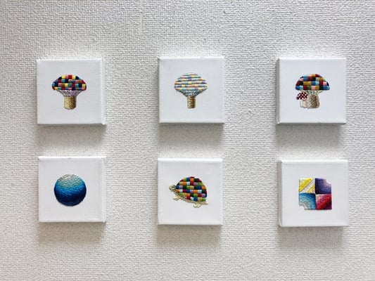 刺繍を画材として描くokadamarikoの作品。