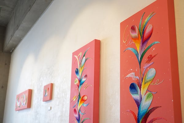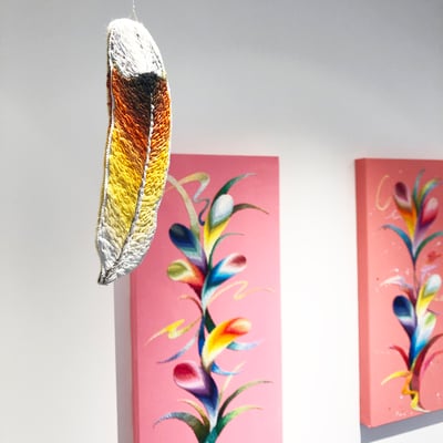 今回のテーマは「SYMPATHY」。作品には制作した時に感じ取ったものの片鱗や祈りのカケラが綴られていきます。そんな作品から感じたものや、見に来てくれた方と共鳴できたら嬉しいです。