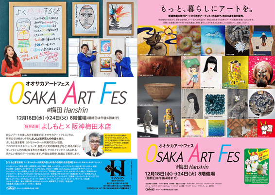 よしもとアートエンターテイメントをはじめ約15社が、イチ押し作家の作品の数かずを一堂に集めて。 今回は「カレンダー」をテーマに、若手芸人たちや若手作家たちが自由な発想で作品を制作。期間中、トークショーやワークショップなどイベントも多彩。阪神発「アートのお祭り」をお楽しみください。
